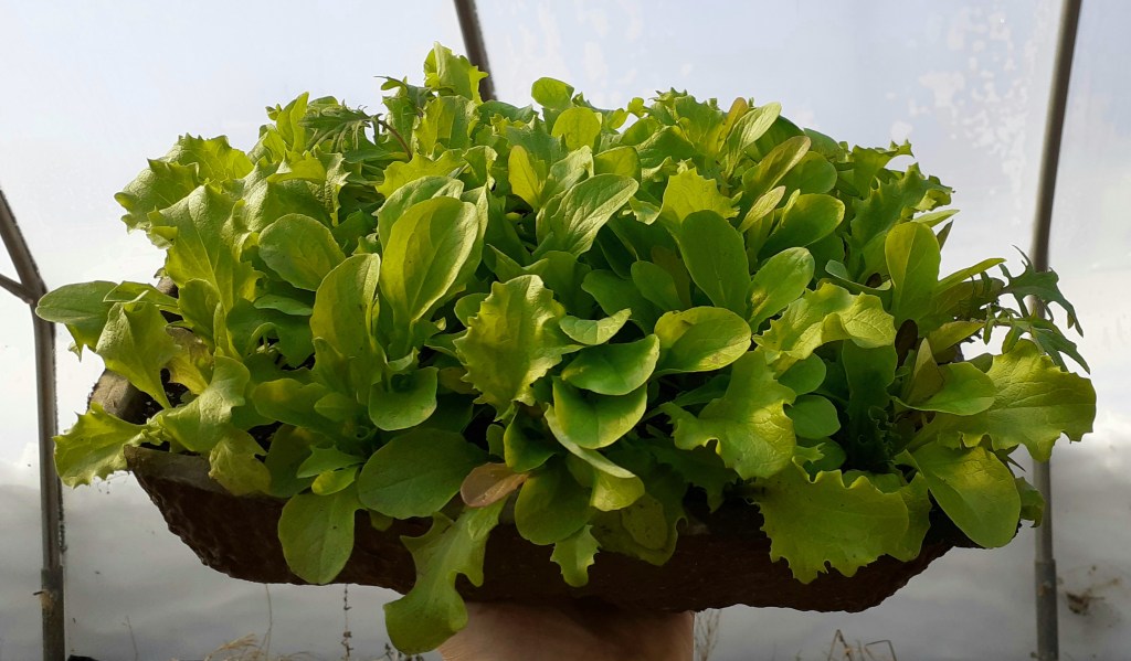 We currently have lettuce, oriental greens and kale well on their way to being transplanted into our cold frame greenhouses. I seeded them at the beginning of February and kept them under grow lights in our basement. We should be able to start harvesting them by mid to late March just as the overwintering greens need time to rest after cropping.