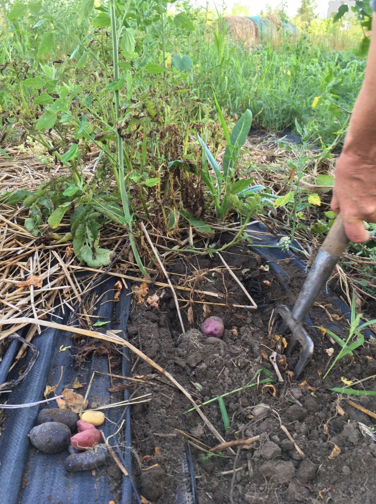 Here on the farm, we recently pulled the garlic which loosened the soil sufficiently to seed beets. As we dig up the potatoes with a fork, we turn over the top 20 cm of soil. This makes it possible to immediately seed carrots and daikon radishes where the potatoes had been removed. In this case, there’s no need to use the rototiller. Tilling disrupts the network of fungal mycelia that extend through the soil from one end of the garden to the other as it does in forests and meadows. These mycelia break down organic matter and make nutrients available to living plants.A productive garden never has vacant spaces. When one crop is finished, another is planted in its place or the land is allowed to become covered in vegetation that naturally moves in.